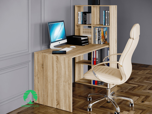 -15%Комп'ютерний кутовий стіл зі стелажем на 8 комірок, офісний стіл з ДСП